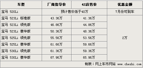 筆者從寶馬北京地區(qū)經(jīng)銷(xiāo)商處了解到,目前寶馬5全系車(chē)型只有525和530有現(xiàn)車(chē)供應(yīng),消費(fèi)者選購(gòu)現(xiàn)車(chē)可以享受2萬(wàn)元左右的優(yōu)惠,優(yōu)惠后5系最低售價(jià)僅為41.36萬(wàn)元。4S店主要有銀色、灰色等款可以挑選,而523需要接受預(yù)訂,同時(shí)新款的寶馬入門(mén)級(jí)車(chē)型520預(yù)計(jì)于7月份到店,但目前價(jià)格和相關(guān)資料尚未公布。