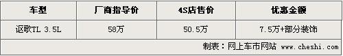 據(jù)4S店銷(xiāo)售人員介紹,目前謳歌TL現(xiàn)車(chē)最高可優(yōu)惠到50.5萬(wàn)元,而原來(lái)廠商指導(dǎo)價(jià)格為58萬(wàn)元,直降幅度達(dá)到了7.5萬(wàn)元,同時(shí)部分店內(nèi)還將贈(zèng)送一部分車(chē)內(nèi)裝飾。目前現(xiàn)車(chē)供應(yīng)比較充足,主要有黑色、銀色、灰色、紅色等。欲購(gòu)車(chē)的消費(fèi)者可以到店試乘試駕這款車(chē)。