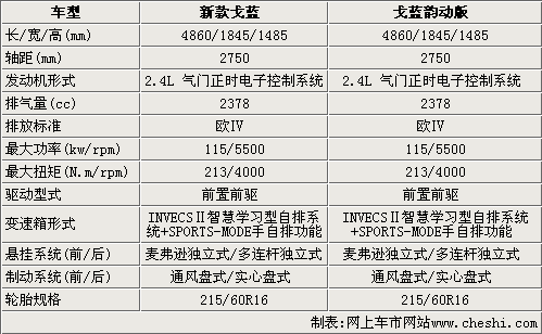 三菱全新戈藍(lán)和韻動版的整車尺寸為4860/1845/1485mm,軸距達(dá)到了2750mm,與雅閣、凱美瑞達(dá)到同一水平。新款戈藍(lán)和韻動版搭載2.4L發(fā)動機,最大功率達(dá)到115kw/rpm,最大扭矩為213N.m/4000rpm.,匹配INVECSⅡ智慧學(xué)習(xí)型手自一體變速箱,并配備有換擋撥片功能。戈藍(lán)采用多連桿式后懸掛系統(tǒng),并采用前通風(fēng)盤式,后實心盤式制動系統(tǒng),使這款車更具操控性和安全性。