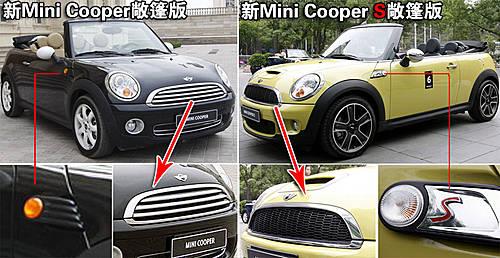 新一代Mini Cooper和Mini Cooper S敞篷版除了在動(dòng)力配置方面存在差異外,其車身外觀也有細(xì)微的區(qū)別。引擎蓋進(jìn)氣口、蜂窩狀進(jìn)氣格柵以及翼子板上鍍鉻底襯上的“S”標(biāo)識(shí)都表示這是一款Mini Cooper S敞篷版車型。