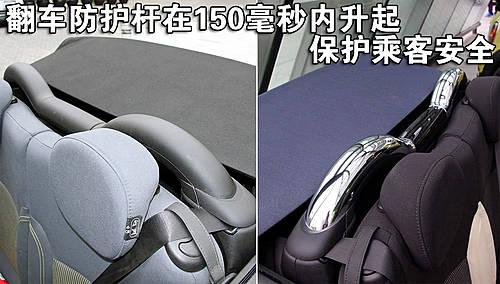 新一代Mini Cooper和Mini Cooper S敞篷版標(biāo)配機(jī)電操控翻車防護(hù)桿,其隱蔽在后座椅后面。車內(nèi)中央安全電子控制系統(tǒng)在車身可能發(fā)生翻滾的150毫秒內(nèi),可以迅速升起防護(hù)桿,從而保證車內(nèi)駕乘人員的安全。