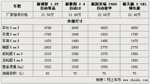 新領(lǐng)馭全系7款車型已于上月底正式上市,售價(jià)為16.98-30.38萬(wàn)元。除前臉和尾部的全新設(shè)計(jì)外,老款1.8T引擎經(jīng)過(guò)重新調(diào)教最大功率達(dá)120Kw。而在此中級(jí)車細(xì)分市場(chǎng)中,新雅閣、新凱美瑞和新天籟均占據(jù)著一定的市場(chǎng)份額。下面通過(guò)對(duì)四款價(jià)格相近車型進(jìn)行詳實(shí)解析,以便為您的購(gòu)車提供一定的參考。