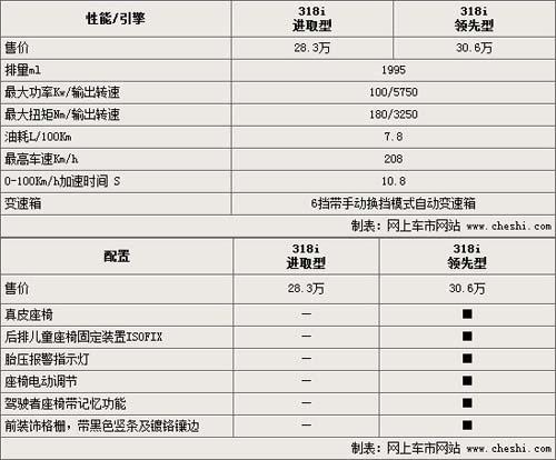 記者近日獲悉,作為國產寶馬3系第5代車型的入門款車型,寶馬318i進取型已經悄然上市。該車的售價為28.3萬元,相比09年初上市的318i領先型轎車的30.6萬元價格下調了2.3萬元。