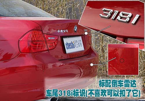 車尾兩側(cè)分別貼上了“華晨寶馬”和“318i”的字樣,為了駕駛者的泊車方便,這款車型還標配了4探頭的泊車雷達。