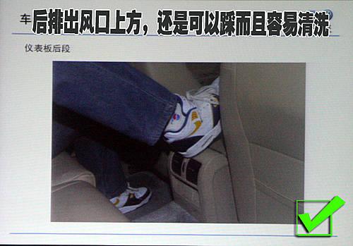 在國(guó)內(nèi)車輛后排座椅的率用率往往很高,這不僅僅是兩邊的坐席位置,中間的坐位也經(jīng)常會(huì)乘坐乘員。那么這名乘員的腿部完全可以放在后排中央出風(fēng)口的位置,因?yàn)榇蟊娍紤]到了車內(nèi)乘員的這種需求,這部分設(shè)計(jì)不但結(jié)實(shí)而且耐用易清洗。