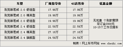 據(jù)4S店銷售人員介紹,目前新君威全系還沒有優(yōu)惠出現(xiàn),各經(jīng)銷商處有一部分現(xiàn)車已經(jīng)到店。而熱銷的紅色款車型仍然是訂單制銷售。目前可選的現(xiàn)車顏色有金色、灰色等款。消費者如果訂車的話,需要交2000元訂金,在10-15個工作日內(nèi)便可以交車。