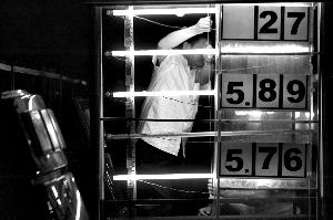 零時,東風北橋一加油站更換價目表。韓萌 攝