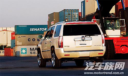 從貨場(chǎng)駛出,一路上被大貨車壓壞的路面坑坑洼洼,這時(shí)MRC主動(dòng)電磁感應(yīng)懸架自動(dòng)調(diào)節(jié)阻尼,高大的車身在顛簸路面上快速前進(jìn),而乘客感到的僅僅是輕微晃動(dòng)。駛離港區(qū),眼前出現(xiàn)筆直的高架公路,輕點(diǎn)油門,車速很快提高到100公里/小時(shí)。這時(shí)從具有AudioPilot噪音補(bǔ)償技術(shù)的Bose音響中流出的音樂依然保持純凈,并未因?qū)挻蟮能嚿砗?85寬胎所產(chǎn)生的些許噪音而受到影響。此外,可能是靈敏的懸架已經(jīng)自動(dòng)調(diào)高阻尼,美國車特有的忽忽悠悠的如坐船般的感覺卻并沒有出現(xiàn)在我們的凱雷德身上。