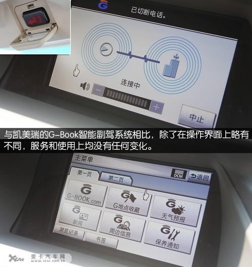 那么Remote Touch信息操作系統(tǒng)能夠控制哪些功能呢?除了常規(guī)的空調(diào)、音響、電話(huà)和導(dǎo)航等功能,之前在凱美瑞上亮相的G-Book智能副駕系統(tǒng)也被整合其中,除了在操作界面上略有不同,服務(wù)和使用上均沒(méi)有任何變化。