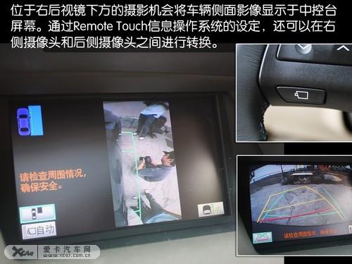 造型典雅的三輻式真皮方向盤(pán)功能不少,不僅能夠控制常規(guī)的音響和行車(chē)數(shù)據(jù)的選擇,按下左下方的車(chē)側(cè)攝影輔助系統(tǒng)開(kāi)啟按鈕,位于右后視鏡下方的攝影機(jī)會(huì)將車(chē)輛右側(cè)影像顯示于中控臺(tái)屏幕,并提供廣角與輔助線功能。通過(guò)Remote Touch信息操作系統(tǒng)的設(shè)定,還可以在右側(cè)攝像頭和后側(cè)攝像頭之間進(jìn)行轉(zhuǎn)換。