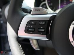 三輻真皮方向盤融合了7個(gè)多功能控制按鈕,方便Driver對不同功能進(jìn)行調(diào)節(jié)。當(dāng)然,撥片換擋這一運(yùn)動(dòng)車的標(biāo)志性配置同樣出現(xiàn)在方向盤后面,左右兩側(cè)各一組,兩手同為“按減撥增”的設(shè)計(jì)方便適應(yīng)不同的駕駛習(xí)慣。