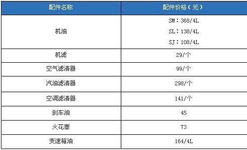 雅閣的機(jī)油價(jià)格比較特殊,分為三種,分別為SJ級(jí),SL級(jí)和SM級(jí)別,價(jià)格也從108元/4L升級(jí)到368/4L?諝鉃V清器每2萬公里更換一次,汽油濾清器每4萬公里更換一次。另外4萬公里時(shí)還需要進(jìn)行一次比較大的保養(yǎng),更換全車油,清洗節(jié)氣門等等,費(fèi)用為2200元。