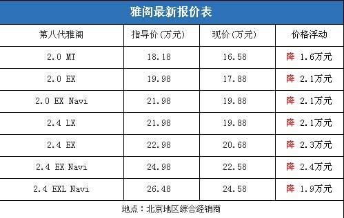 出色的銷售成績(jī)當(dāng)然需要依靠吸引人的市場(chǎng)價(jià)格,近期北京地區(qū)的價(jià)格有較大幅度的下降,全系車型優(yōu)惠在1.6-2.4萬元區(qū)間,雅閣最低配車型的售價(jià)為16.58萬元。