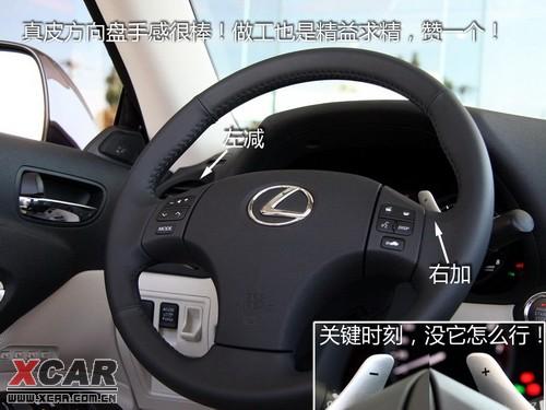 除了色調(diào)外,IS300C的內(nèi)部設(shè)計(jì)與普通車型基本上一致,不過我倒是覺得儀表盤IS300C完全可以再炫一些,“風(fēng)”要由內(nèi)而外的“拉”。IS系列的方向盤手感很棒,真皮材質(zhì)很細(xì)膩,粗細(xì)也非常趁手,普通車型都具備的換擋撥片當(dāng)然也不會(huì)缺席。