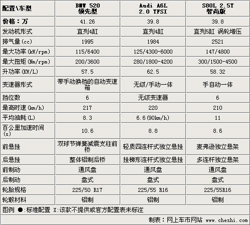 在動(dòng)力配置方面,沃爾沃S80L入門(mén)車款就配備了2.5T發(fā)動(dòng)機(jī),因此動(dòng)力性方面會(huì)更占優(yōu)勢(shì);而A6L的2.0T引擎兼顧了低排量和高效動(dòng)力的優(yōu)勢(shì)同時(shí)也滿足了政府采購(gòu)的需求;而寶馬新上市的520li僅僅配備了一臺(tái)4缸自然進(jìn)氣引擎,盡管其數(shù)據(jù)在同排量自然進(jìn)氣引擎中算是出色的了,但是比起另外兩個(gè)對(duì)手來(lái)說(shuō)動(dòng)力性上確實(shí)有些差距。