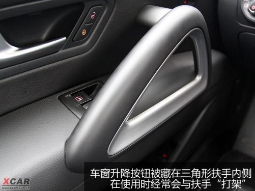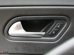 雖然還是那么熟悉的儀表臺,但尚酷還是有自身獨特的設(shè)計。車門上的三角形扶手造型很不錯,搭配銀色仿金屬裝飾很大程度上提升了車內(nèi)的質(zhì)感。旁邊圍繞著日常相關(guān)的操作按鈕,不過一鍵式車窗升降按鈕被藏在三角形扶手內(nèi)側(cè),在使用時經(jīng)常會與扶手“打架”,略顯不便。