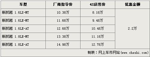 上海通用-新凱越全系讓利2.2萬元
