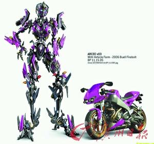 可以看到,在新增的這些角色里,量產(chǎn)車型依然是雪佛蘭的天下,尤其是正義的博派,新增車型都是雪佛蘭最新或即將上市的車型。還有三輛帥氣的摩托車,其中粉色、藍(lán)色的摩托車都是以女性角色出現(xiàn),藍(lán)色摩托車還是Ironhide(鐵皮)的女朋友,看來傻頭傻腦的鐵皮在談戀愛這個嚴(yán)肅問題上倒是一點兒都不傻,動作相當(dāng)快。