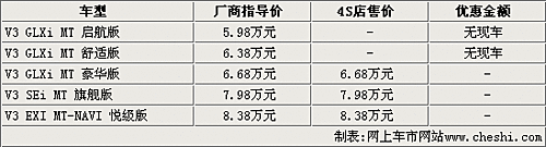 據(jù)東南經(jīng)銷商處銷售人員介紹,目前V3菱悅?cè)惮F(xiàn)車正在逐步充足貨源,最低配的車型仍因尚未投產(chǎn)而無(wú)法購(gòu)買,請(qǐng)消費(fèi)者諒解。V3系列其它的幾款高配車型各店已經(jīng)不需要再預(yù)訂,基本可以滿足消費(fèi)者購(gòu)車提車的需要。同時(shí)銷售人員還說(shuō),現(xiàn)在購(gòu)車可享受到1000元的現(xiàn)金優(yōu)惠,另有精美的裝飾贈(zèng)送。