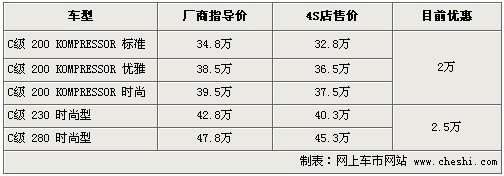1.奔馳C最高優(yōu)惠2.5萬(wàn) 購(gòu)車(chē)送全險(xiǎn)