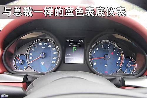 與總裁一樣瑪莎拉蒂GranTurismo的儀表盤采用的是藍(lán)色表底,白色數(shù)字非常的清晰,中央的信息顯示屏很實(shí)用,而320Km/h時(shí)刻提醒你它的能力有多大。