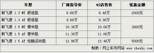 新飛度一直是AO級市場最熱銷的一款車型之一,動感時尚的外觀是最大的亮點,其次運動感強(qiáng)烈的內(nèi)飾方向盤,頂配裝有運動座椅。而最值得一提的是新飛度在城市行駛具有非常經(jīng)濟(jì)的油耗,所以廣受歡迎。目前筆者從廣州本田經(jīng)銷商處了解到,新飛度現(xiàn)在最高可優(yōu)惠現(xiàn)金5000元,具體行情如下: