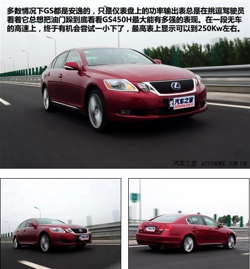多數(shù)情況下GS450h都是安逸的,只是儀表盤上替代了發(fā)動(dòng)機(jī)轉(zhuǎn)速表的功率輸出表總是在挑逗著駕駛員?粗傆邢氚延烷T踩到底,看看這款車最大能輸出多大的功率。終于在沒(méi)什么車的一段高速公路上,我的這個(gè)心愿得到了滿足,一腳到底的油門,汽油發(fā)動(dòng)機(jī)和電動(dòng)機(jī)一起給后輪做工,我的身體被牢牢的貼在椅背上,功率表上的指針直到指向250Kw左右時(shí)才停住。在車速達(dá)到了200km/h時(shí),在車內(nèi)可以明顯的感覺(jué)到發(fā)動(dòng)機(jī)升到了最高檔位,功率也隨之降了下來(lái),功率表的指針一下掉到了100Kw左右的位置。