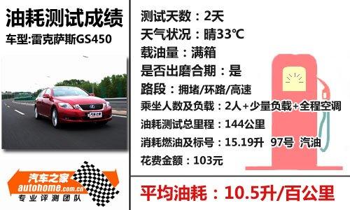 在油耗這個(gè)測試環(huán)節(jié),汽車之家專業(yè)測試團(tuán)隊(duì)為了模擬消費(fèi)者日常駕駛場景,特意選擇了雷克薩斯GS450h有可能出現(xiàn)的各種路面進(jìn)行油耗的測試,以求得出一個(gè)盡量公正的油耗成績。我們共駕駛GS450h行駛了144公里,其中包括大約75公里非常嚴(yán)重的城市擁堵路段,30公里的車輛較少的高速公路,剩下的35公里是城市環(huán)路和城郊公路。在整個(gè)測試過程中,車內(nèi)乘員2名,另裝載小于10公斤的物品,最終得出的成績是百公里油耗10.5升。作為一款中大型的轎車來講,GS450h的油耗成績編輯個(gè)人表示非常滿意,但作為一款混合動(dòng)力車型來講,這款車就有點(diǎn)鋪張浪費(fèi)了,混動(dòng)車型的初衷就是要靠電動(dòng)機(jī)輔佐發(fā)動(dòng)機(jī)工作,以使得車輛整體的耗油量降低。