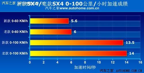 這加速測試中,新款SX4起步時對車身姿態(tài)控制不錯,1.6L AT運動型的百公里加速最好成績?yōu)?3.5秒,比老款車型的14秒略有提升。不過從絕對數(shù)值上看,13.5秒仍是一段比較“漫長”的時間。