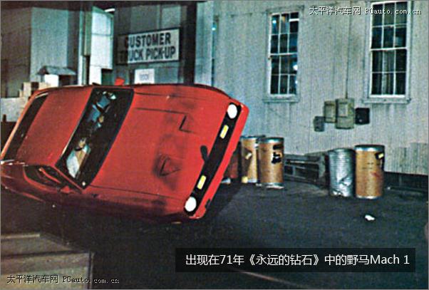個(gè)人感覺相比64、65年的敞篷野馬,71年的《永遠(yuǎn)的鉆石》中福特野馬Mach 1讓人印象更加深刻。在逃脫以后,邦德在拉斯維加斯上了Tiffany Case的這輛車;他用它來逃脫拉斯維加斯警察的追捕(除了拉斯維加斯警察局的車為1970年產(chǎn)福特之外,其他警車,包括安全部隊(duì)的車都是1971年產(chǎn)福特Custom 500。)此外,Mach 1甚至還出現(xiàn)在了1973年的蝙蝠俠漫畫中。