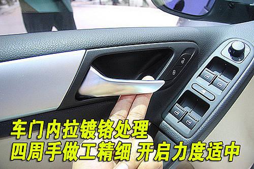 第六代高爾夫四只車門拉手都噴上了與車身同色的車漆,開啟車門時(shí)發(fā)現(xiàn)車門拉手部分做工比較細(xì)致。