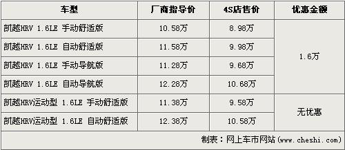 據(jù)經(jīng)銷(xiāo)商處銷(xiāo)售人員介紹,別克凱越HRV已經(jīng)停產(chǎn),店內(nèi)在售的車(chē)型只有舒適版和導(dǎo)航版,運(yùn)動(dòng)版車(chē)型已經(jīng)沒(méi)有庫(kù)存車(chē)。在售的舒適版和導(dǎo)航版車(chē)型優(yōu)惠1.6萬(wàn)元,全系入門(mén)級(jí)的手動(dòng)舒適版售價(jià)降到了8.98萬(wàn)元。