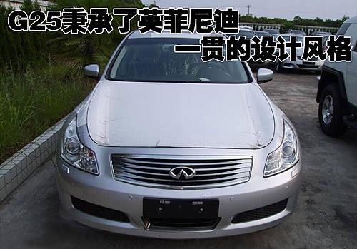 作為英菲尼迪G系家族新成員,G25秉承了英菲尼迪一貫的設計風格。前保險與發(fā)動機蓋的線條過度流暢,鮮明的車頂弧線和強勁有力的腰線構成了典型的英菲尼迪車型輪廓。雙拱形進氣格柵與L型的高強度氙氣前大燈相互映襯,LED組合式尾燈點綴在英菲尼迪G25部,醒目的10幅大尺寸輪胎標識出了其運動的格調。
