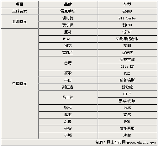 2009廣州車展已于今日正式開幕,本屆車展將有德系、美系、日系、韓系以及自主品牌等共計(jì)27款新車集中上市發(fā)布。這其中不僅包括全球首發(fā)車型雷克薩斯GX460,而且還有保時(shí)捷911 Turbo和寶馬5系GT等多款亞洲和國(guó)內(nèi)首發(fā)車型。通過以下的詳實(shí)解析,讓我們一睹它們到底具備怎樣的風(fēng)采。