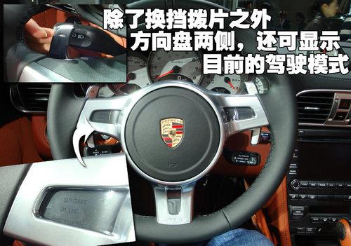 配備PDK雙離合變速器的2010款保時捷911 Turbo敞篷版,可以通過選裝帶有換檔翹板開關(guān)的新款選裝三輻方向盤取代帶有傳統(tǒng)換檔按鈕的標準方向盤。換檔翹板開關(guān)牢固安裝在方向盤上,右側(cè)的翹板開關(guān)用來升檔,左側(cè)的翹板開關(guān)用來降檔。