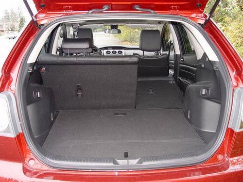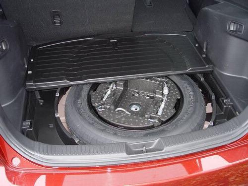 在排擋桿的后面是兩個(gè)杯架,后排中央扶手處也有兩個(gè)。在兩個(gè)前排座椅之間是一個(gè)帶有很大儲(chǔ)物箱的扶手,抬起扶手就可以發(fā)現(xiàn)里面有一個(gè)托盤,外接音頻接口和12伏電源插座。在手套箱和前排座椅背部的口袋內(nèi)內(nèi)還有更大的儲(chǔ)物空間。只需扳動(dòng)行李箱內(nèi)的一個(gè)扳手就可以將后排座椅折疊放平,從而使儲(chǔ)物空間大大提高。在行李箱地板下備胎周圍還隱藏著一個(gè)儲(chǔ)物空間。車尾的掀背式尾門很輕,打開抬起或放下尾門都很容易,尾門開口很高,很寬,雖然儲(chǔ)物空間很寬敞,但仍比RAV4,CR-V和Equinox的小。