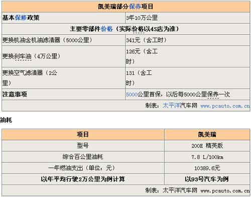 在保養(yǎng)方面,廣汽豐田為凱美瑞提供了3年或10萬公里的整車質(zhì)保,在同級車型中相當出眾。凱美瑞擁有2.0升和2.4升兩種排量車型,我們從廣汽豐田4S店了解到,凱美瑞擁有的這兩款車型保養(yǎng)費用幾乎是一致的,只是在個別零部件上有微小的差異。