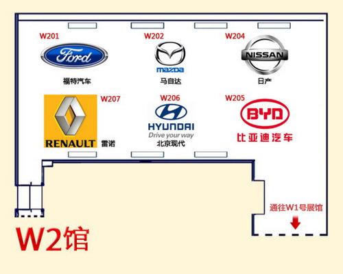 在本屆北京車展,W2館有日產(chǎn)、現(xiàn)代、馬自達(dá)、比亞迪汽車、福特汽車、雷諾等共6個(gè)品牌參展,主要亮點(diǎn)車型:日產(chǎn)LEAF、日產(chǎn)Juke、北京現(xiàn)代RC、北京現(xiàn)代i50、馬自達(dá)馬自達(dá)8、比亞迪S6/L3、福特銳界、福特新?怂挂约袄字Z新梅甘娜CC等。