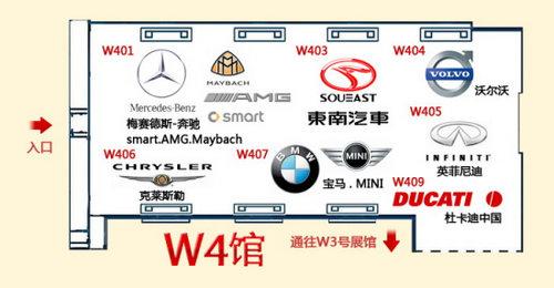 W4館將有沃爾沃、寶馬、MINI、克萊斯勒、英菲尼迪、東南、杜卡迪中國(guó)、梅賽德斯-奔馳、smart、AMG、邁巴赫等11個(gè)品牌參展,主要亮點(diǎn)車型包括沃爾沃新S60、華晨寶馬5系加長(zhǎng)版、寶馬VED概念車、MINI Countryman、克萊斯勒新大切諾基、英菲尼迪QX56、奔馳全新E級(jí)敞篷以及奔馳2011款R級(jí)等。