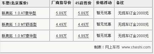 長安鈴木新奧拓上市已有一段時間,但是目前市場上的熱度依然不減?磥黹L安鈴木對奧拓車型的改進(jìn)十分成功,完全得到了消費者認(rèn)可。在微型車市場上新奧拓完美的替代了老款奧拓的地位,繼續(xù)暢銷。網(wǎng)上車市走訪了北京地區(qū)長安鈴木4S店,對新奧拓的最新市場情況進(jìn)行了了解,具體信息請參考下表: