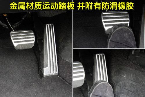 G37敞篷版車型為突出其運(yùn)動風(fēng)格,所以離合、油門、剎車踏板外部由金屬包裹,并帶有防滑膠粒,各踏板操作行程適中、輕便。