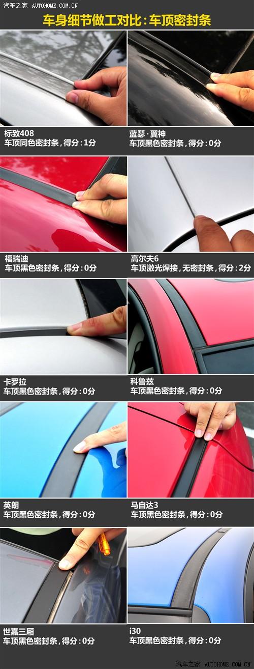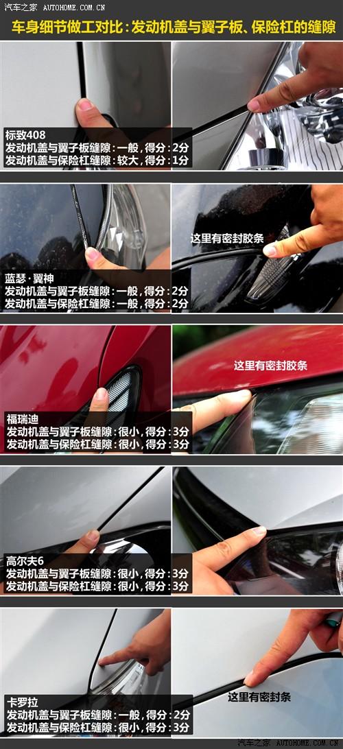 在這一環(huán)節(jié)的對(duì)比中,得分最高的高爾夫占了很大的便宜,其實(shí)是因?yàn)樗捎昧思す夂附拥能?chē)頂,而出乎我們意料的不是高爾夫,而是福瑞迪,他的鈑金縫隙控制非常好,發(fā)動(dòng)機(jī)蓋與翼子板和保險(xiǎn)杠的接縫都非常小,在10款車(chē)中都是最小級(jí)別的。