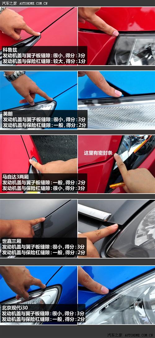 1、發(fā)動(dòng)機(jī)蓋與左側(cè)翼子板的接縫,位置靠近大燈的地方。十款車(chē)相比的話,縫隙較小的得3分;縫隙一般的得2分;縫隙較大的得1分。