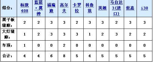 2、發(fā)動(dòng)機(jī)蓋與大燈的接縫。十款車(chē)相比的話,縫隙較小的3分;有些車(chē)縫隙中有密封條,視為縫隙較小;縫隙一般大的得2分,縫隙較大的得1分。