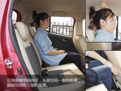 再來看新奧拓前后排座椅空間,在保持一個舒適坐姿的情況下,1.65米的編輯前排頭部離頂棚大概有兩拳左右的距離,后排頭部離頂棚有一拳的距離,腿部空間大概三指左右,總體來說表現(xiàn)還算不錯,尤其是前排的頭部空間很寬敞,顯然這得益于新奧拓所有車身參數(shù)的增大。