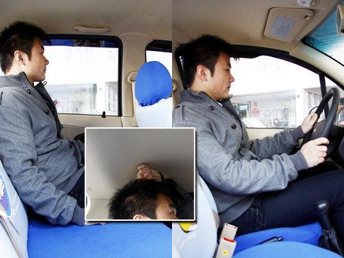 樂馳的車內(nèi)空間感覺上很狹小,就連前排乘坐空間也是如此,上圖中空間展示者身高175cm左右,如此身高已經(jīng)前后接近于車內(nèi)頂棚,對(duì)于空間展示者來說,前、后的頭部空間,也只有一拳左右的富余量。