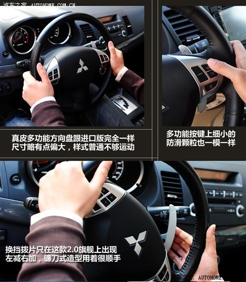 除了這兩樣標(biāo)準(zhǔn)配置以外,翼神還有兩個亮點,第一個即高配車型上的儀表盤,中央顯示屏色彩相當(dāng)炫目,非常漂亮!不光是視覺效果好,可以顯示的行車信息也是相當(dāng)?shù)呢S富,可謂應(yīng)有盡有;第二個則是換擋撥片,在2.0升旗艦版車型上面提供了與進(jìn)口Lancer EX相同的撥片,而且在實際使用中的反應(yīng)很靈敏迅速。不過要想真正追求駕駛樂趣,顯然手動擋車型才能滿足。換擋行程很短,有一定的吸入感,既緊湊又不會生硬,這種感覺對于年輕人來說肯定夠誘惑,雖然說這款來自愛信的變速箱并不像CVT一樣是進(jìn)口的。