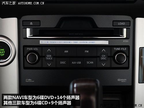 音響方面,導航版兩款車型采用6碟DVD和14個揚聲器,其他三款車型則是6碟CD和9個揚聲器,對于外接音源接口的支持一樣。