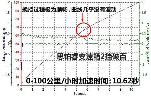 既然說(shuō)到這里,就讓我們先來(lái)看看思鉑睿的加速成績(jī)。如果你用S擋自動(dòng)模式(關(guān)掉車(chē)身穩(wěn)定控制),起步的時(shí)候根本聽(tīng)不到輪胎有一絲接近極限的跡象,看著發(fā)動(dòng)機(jī)轉(zhuǎn)速慢慢攀升的樣子讓人覺(jué)得時(shí)間十分漫長(zhǎng),最終的成績(jī)都將會(huì)在11秒開(kāi)外,這顯然不能代表思鉑睿的真實(shí)水平。后來(lái)測(cè)試中我們?cè)赟擋下改用手動(dòng)模式,盡管思鉑睿的5擋變速箱可以2擋破百,也就是說(shuō)在測(cè)試過(guò)程中只需要換一次擋,但區(qū)別還是很大。在S擋模式下,發(fā)動(dòng)機(jī)轉(zhuǎn)速會(huì)在不到6500轉(zhuǎn)/分鐘的時(shí)候自動(dòng)換擋,而手動(dòng)模式可以把轉(zhuǎn)速拉到7000轉(zhuǎn),這樣一來(lái)在換到2擋時(shí)就可以獲得更高的轉(zhuǎn)速,加速成績(jī)可以提高將近一秒鐘左右。最終我們實(shí)測(cè)的思鉑睿0-100加速成績(jī)?yōu)椋?0.62秒。