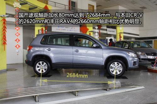 國產(chǎn)版的途觀應(yīng)用了美版新款車型的前臉造型,也就是現(xiàn)在的大眾家族臉譜——復(fù)古式水平中網(wǎng)設(shè)計。除了前臉與進口國內(nèi)的Tiguan不同外,為了適應(yīng)國內(nèi)消費者的使用習(xí)慣,國產(chǎn)途觀還進行了相應(yīng)的拉長,軸距達(dá)到了2684mm,相比海外版長了80mm。